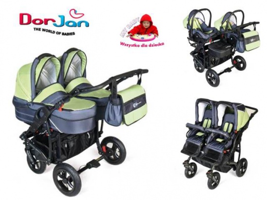 Wózek bliźniaczy wielofunkcyjny posiada możliwość wpięcia fotelików samochodowych. System skrętnych pompowanych kół przednich z możliwością blokady do jazdy na wprost zapewnia lekkość prowadzenia oraz łatwość manewrowania wózkiem, nawet w wersji bliżniaczej.