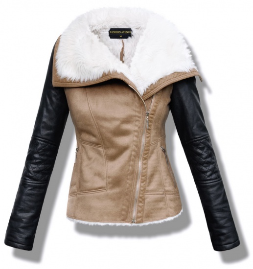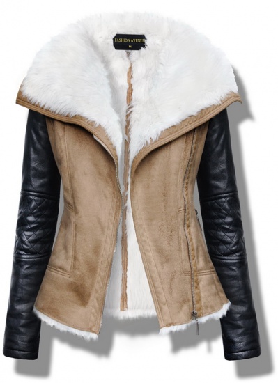 Kożuszek damski z imitacji zamszu od środka ocieplany miękkim futerkiem
