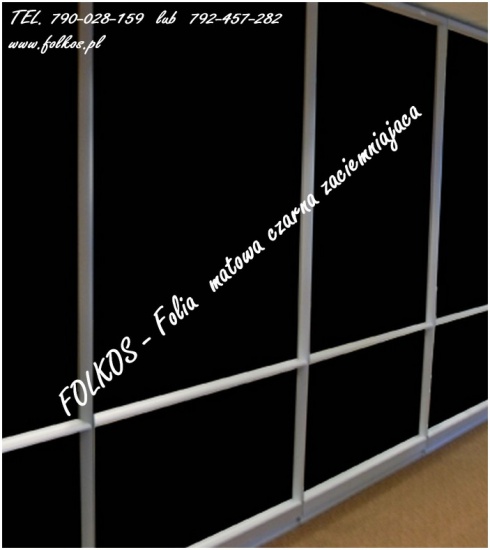 Folia matowa czarna ( zaciemniajacą) nie przepuszczajaca obrazu i światła.