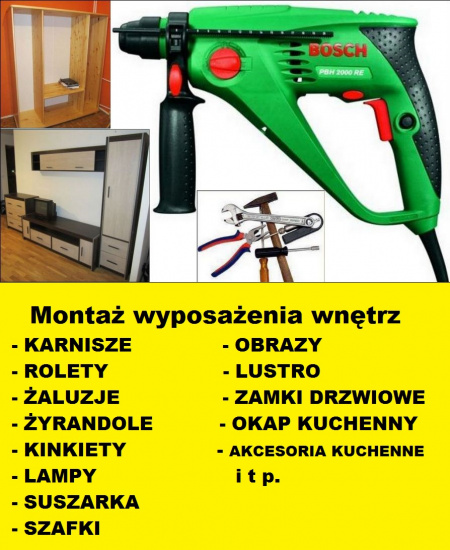 Montaż wyposażenia wnętrz,karnisze,rolety,żaluzje,i n n e.