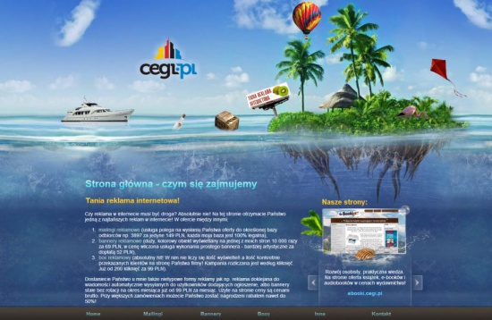 Wykonuję kompleksowe usługi tworzenia stron internetowych bez żadnych dodatkowych, ukrytych kosztów typu serwer lub domena PL (na 1 rok za darmo!). Każda wykonana strona umożliwia samodzielne zarządzanie treściami i zdjęciami. Posiadam mniejsze i większe pakiety dla różnych typów klientów: - prosta, estetyczna strona www. Należy dostarczyć mi wszystkie materiały i zdjęcia - profesjonalna grafika na zamówienie, animowany banner górny. Należy dostarczyć teksty i zdjęcia, drobne poprawki w cenie - kompleksowa usługa wykonania profesjonalnej, responsywnej (wersja na komórki, tablety i komputery) strony www z animacjami, w cenie zredagowanie treści na podstawie dostarczonego zarysu tematu, projektowanie menu i nawigacji. W tym pakiecie mogę w całości zająć się wykonaniem strony www BEZ Państwa udziału. W cenie darmowa reklama powstałej strony www.