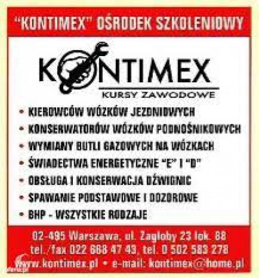 Ośrodek Szkoleniowy KONTIMEX oferuje kurs z zakresu obsługi wózka jezdniowego z wymianą butli.