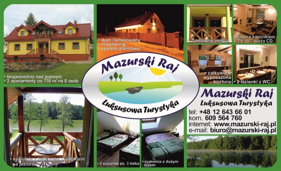 Zapraszamy do naszego domu Mazurski Raj - Luksusowa Turystyka nad jeziorem Czarna Kutach w Kutach koło Giżycka (18 km).